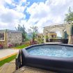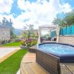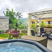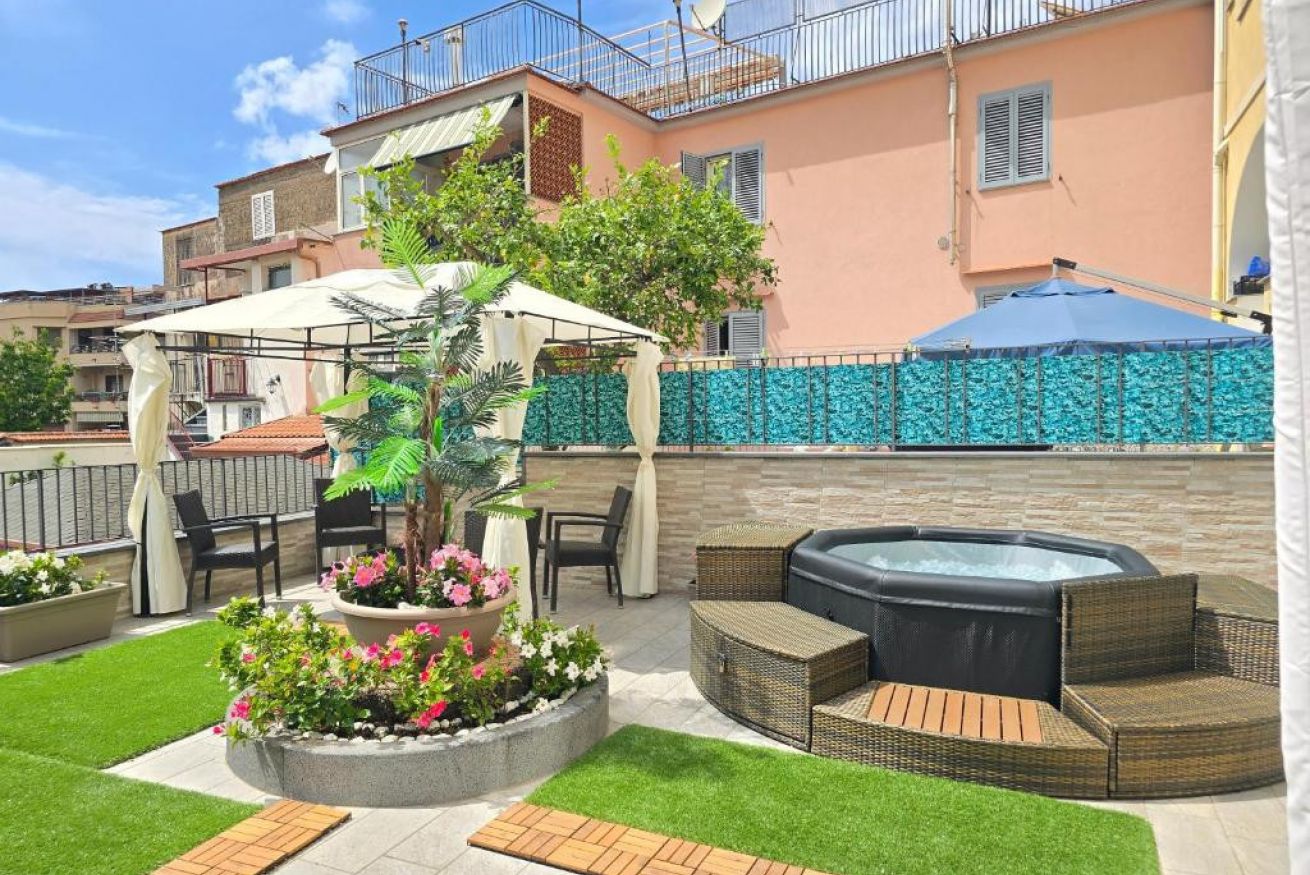 The highlight is the spacious terrace—a private outdoor haven with sun loungers, a table, umbrella, and a semi-rigid hot tub available starting June 1st.