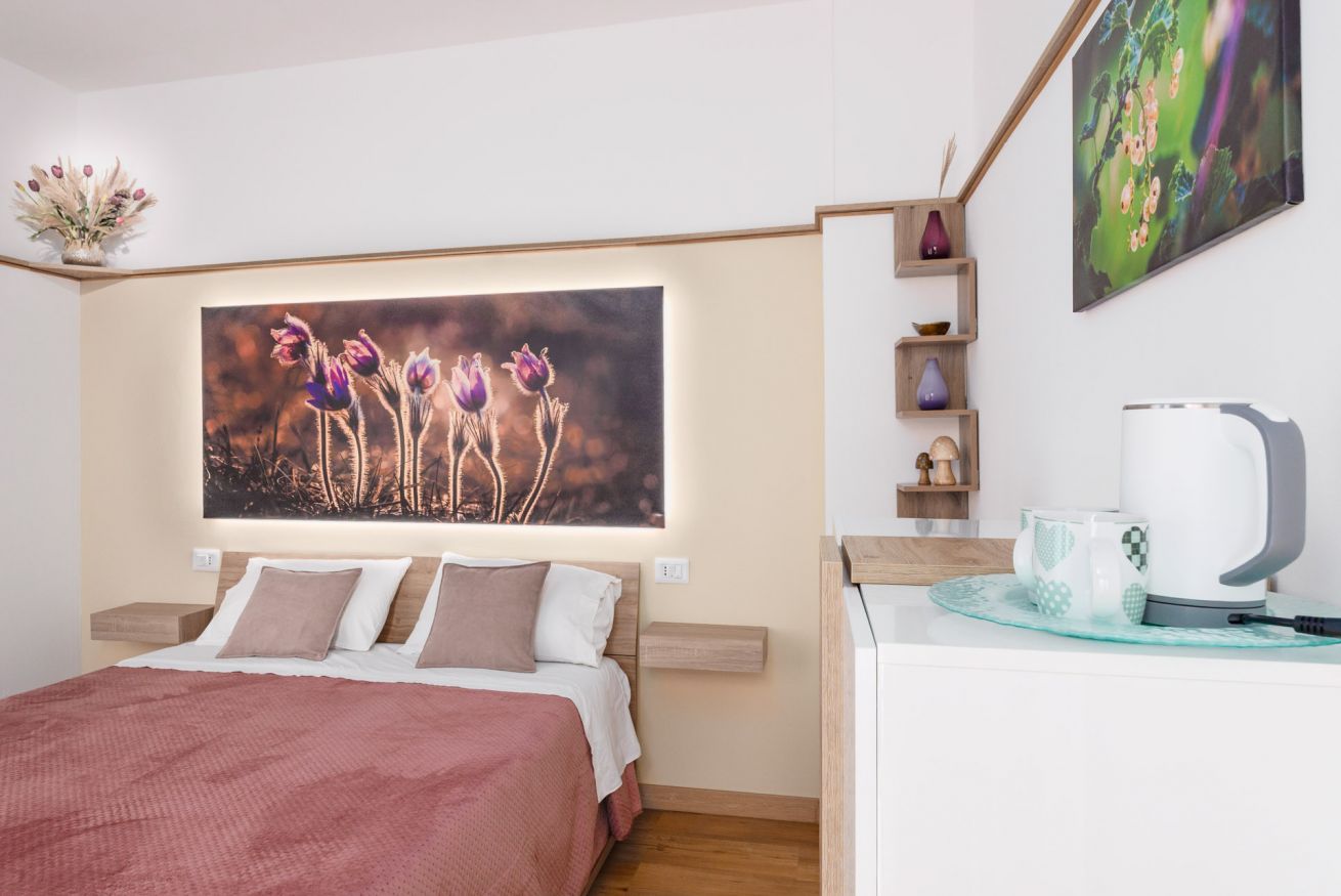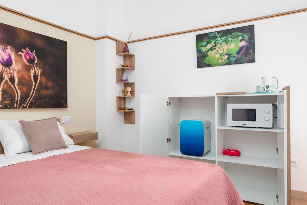 The atmosphere is calm and welcoming, with comfortable beds, quality linens, air conditioning, and fast Wi-Fi. Every room includes a kettle and microwave, offering small practical conveniences during the stay. The private bathroom in each room is bright and equipped with shower, hairdryer, and towels. One of the rooms also features a small balcony. The recent renovation and the care put into the details create an elegant and comfortable environment for guests.