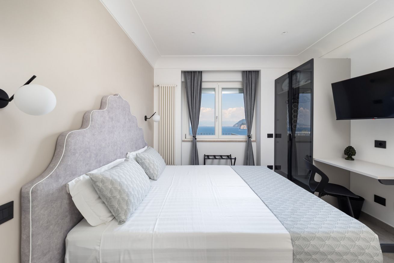 Every space is designed for your relaxation: you will find two cozy bedrooms promising restorative sleep, an elegant bathroom, and a fully equipped kitchen ready for your culinary adventures. But the real magic reveals itself outside: enjoy an unparalleled view of the crystal-clear sea and the majestic Mount Vesuvius — a breathtaking panorama every morning and at sunset.