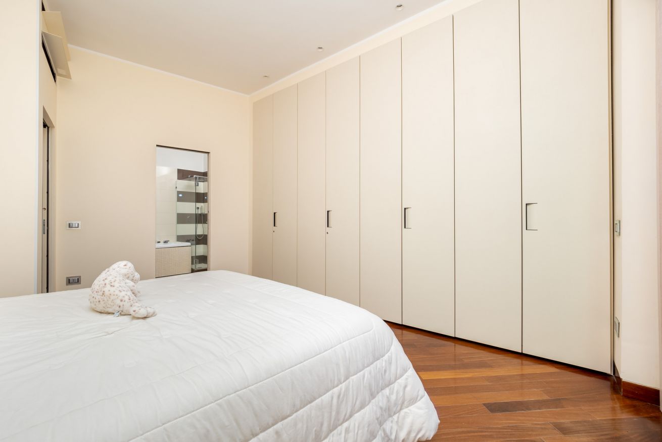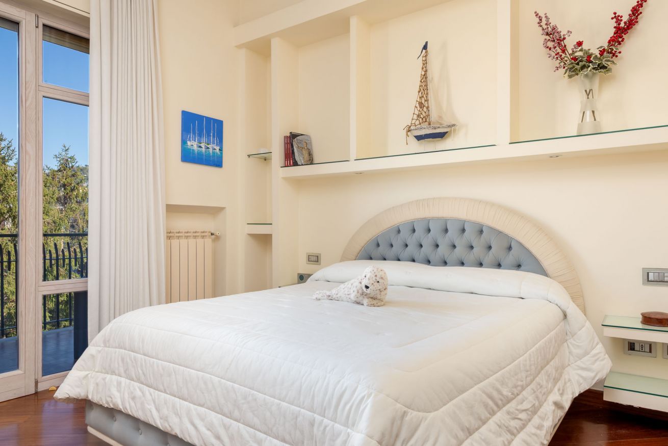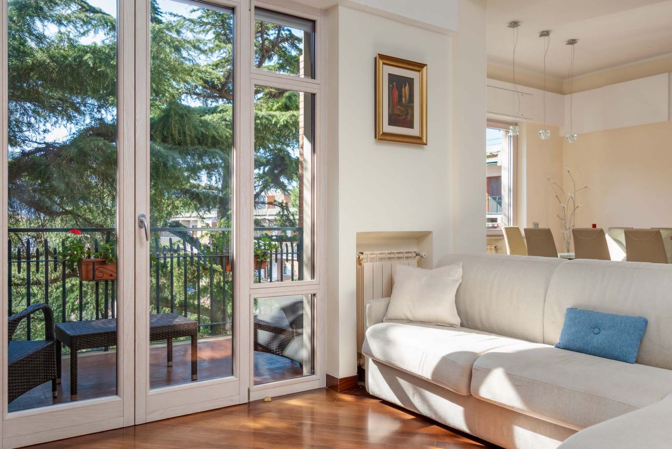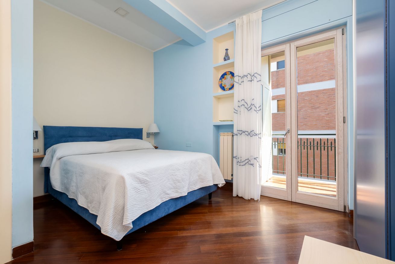 This elegant apartment on the 4th floor of a distinguished building offers a stylish and relaxing holiday, with spacious rooms, high-end finishes, and balconies overlooking the city and glimpses of the sea.