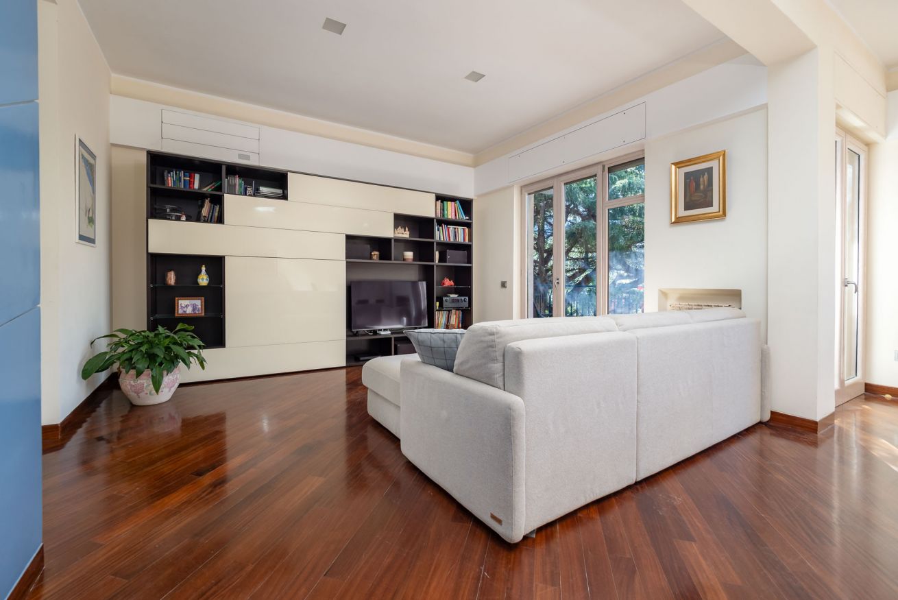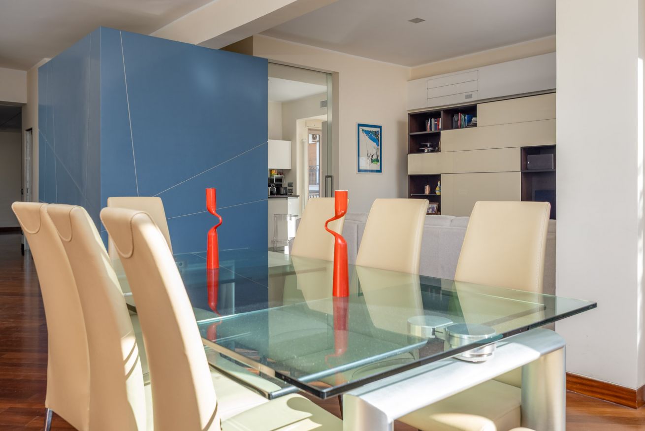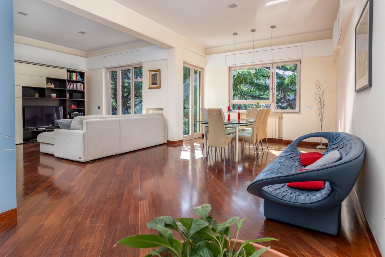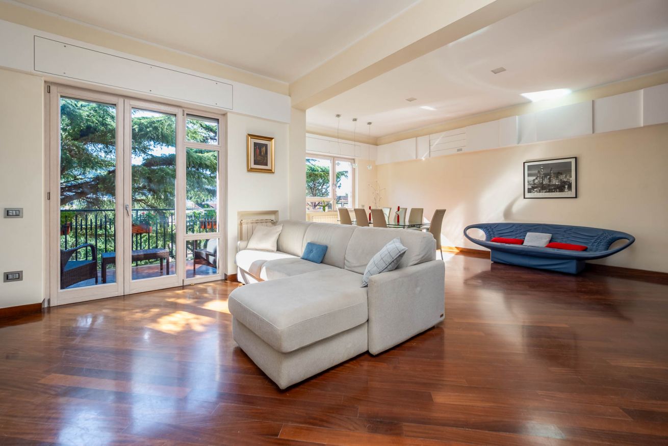 This elegant apartment on the 4th floor of a distinguished building offers a stylish and relaxing holiday, with spacious rooms, high-end finishes, and balconies overlooking the city and glimpses of the sea.