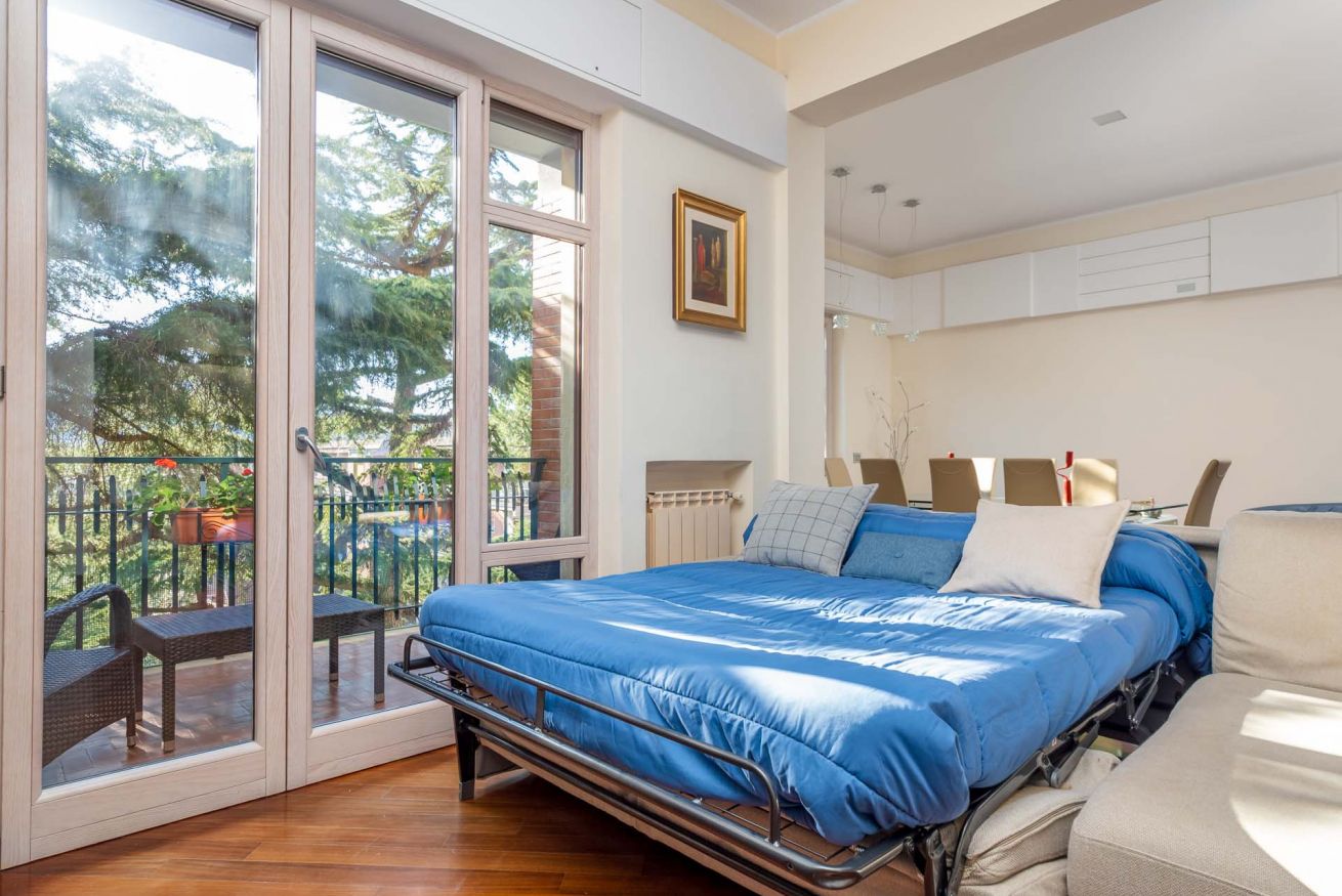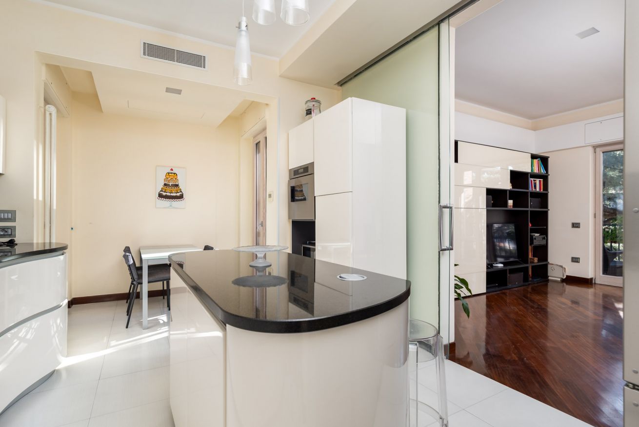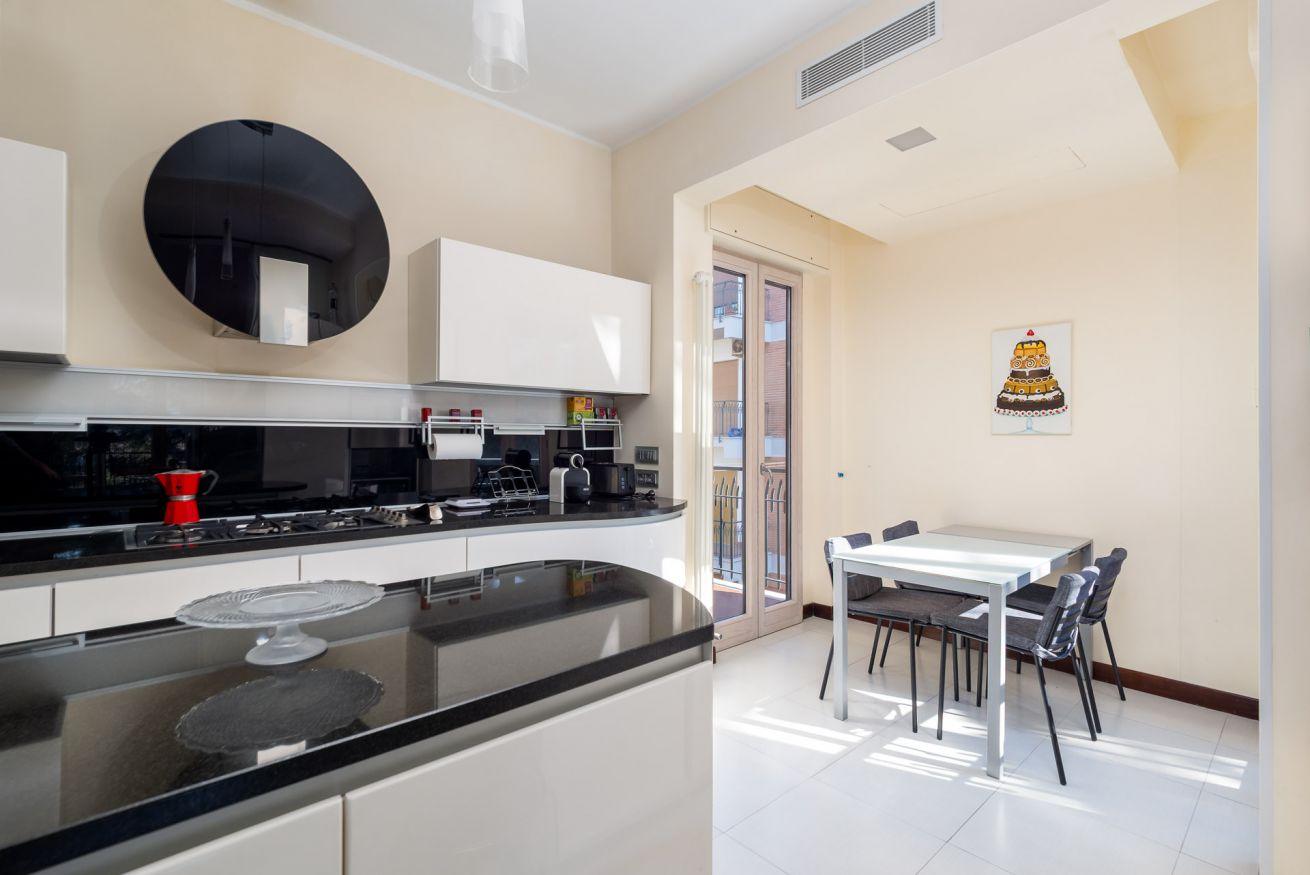 The apartment has been tastefully furnished, combining elegance and functionality to offer you an unforgettable stay. Each room is bright and airy, with large balconies where you can admire the pine tree just outside, the urban landscape, and partial sea views.
