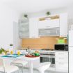 The large living room with kitchen and adjacent bright outdoor patio is the highlight of the property. You can enjoy relaxing moments in the sun and easily prepare your meals thanks to the fully equipped kitchen.
