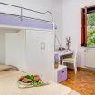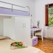 The third bedroom, the largest, is a quadruple room that accommodates a double bed, a single bunk bed, and another single bed, comfortably hosting up to 4 people.