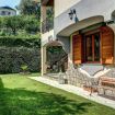 Ground floor with private entrance: large living room, fireplace, dining room with a large indoor table, fully equipped kitchen, one double bedroom, and a full bathroom. Outside, the house is surrounded by a beautiful, characteristic, and well-kept flower garden, with a patio and a large table with chairs to enjoy lunch or dinner outdoors.