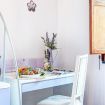 On the second floor there are 4 bedrooms, each named and decorated with the colors of a flower from the garden.