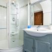 On the lower floor, you will find a bright living room with a fully equipped kitchenette, perfect for preparing delicious dinners with fresh local products. The sea view through large windows will accompany your meals. For entertainment and comfort, a TV, Wi-Fi connection, and air conditioning are available.
